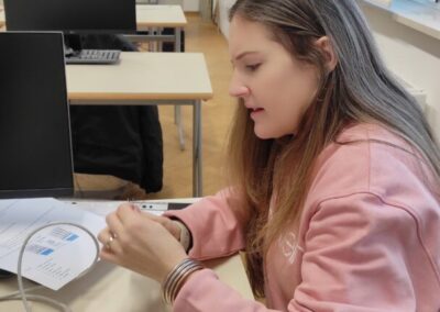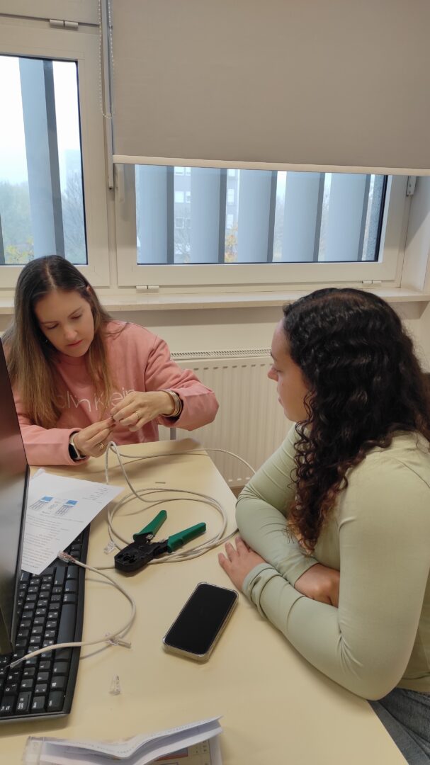 U srijedu, 12. studenog, profesorice su satu predmeta Uvod u računalne mreže (razred 2.e, prof. Horvatić) pratile izvođenje vježbe izrade i ispitivanja mrežnih kablova (UTP) u kojoj su imale priliku i izravno sudjelovati, dok su na satu Skriptnih jezika i web programiranja (razred 4.c, prof. Marijanović) pratile izvođenje vježbe JS: Petlje Pogrješke. Na kraju dana, učenici Ivan Miketa i Borna Bogad predstavili su kratkoročnu mobilnost učenika Srednje škole Jelkovec u sklopu projekta 2025-1-HR01-KA121-VET-000339448.