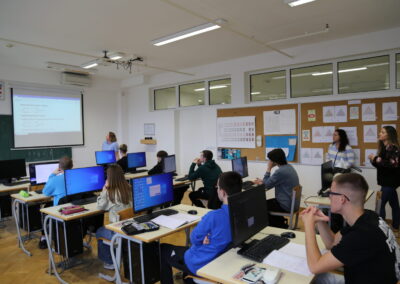 Napredno i objektno programiranje (razred 4.d, prof. Vidmar uz zamjenu prof. Gradiček), gdje su učenici predstavili gošćama svoje završene projekte;