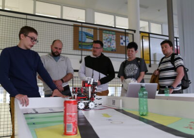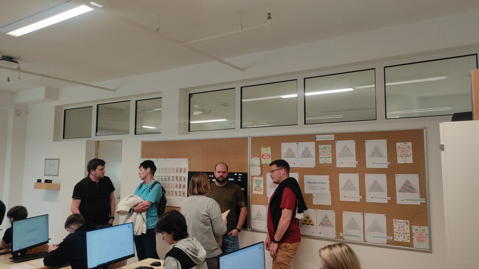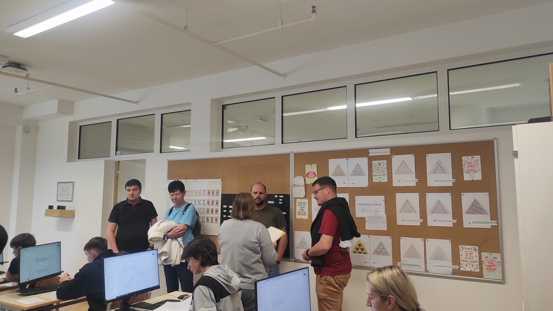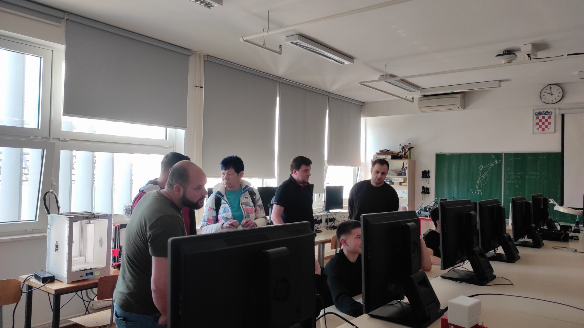 U četvrtak, 23. travnja, profesori su prvo posjetili vježbe predmeta Programljivi logički upravljači (razred 4. b, prof. Skuliber) gdje su imali priliku vidjeti rad učenika u PLC simulatoru. Nakon toga su posjetili vježbe predmeta Primijenjena matematika (3. e, prof. Carević) i Napredno i objektno programiranje (3. e, prof. Vidmar). Na vježbama PM promatrali su grupni rad učenika, dok su na vježbama NOP promatrali izradu aplikacija.