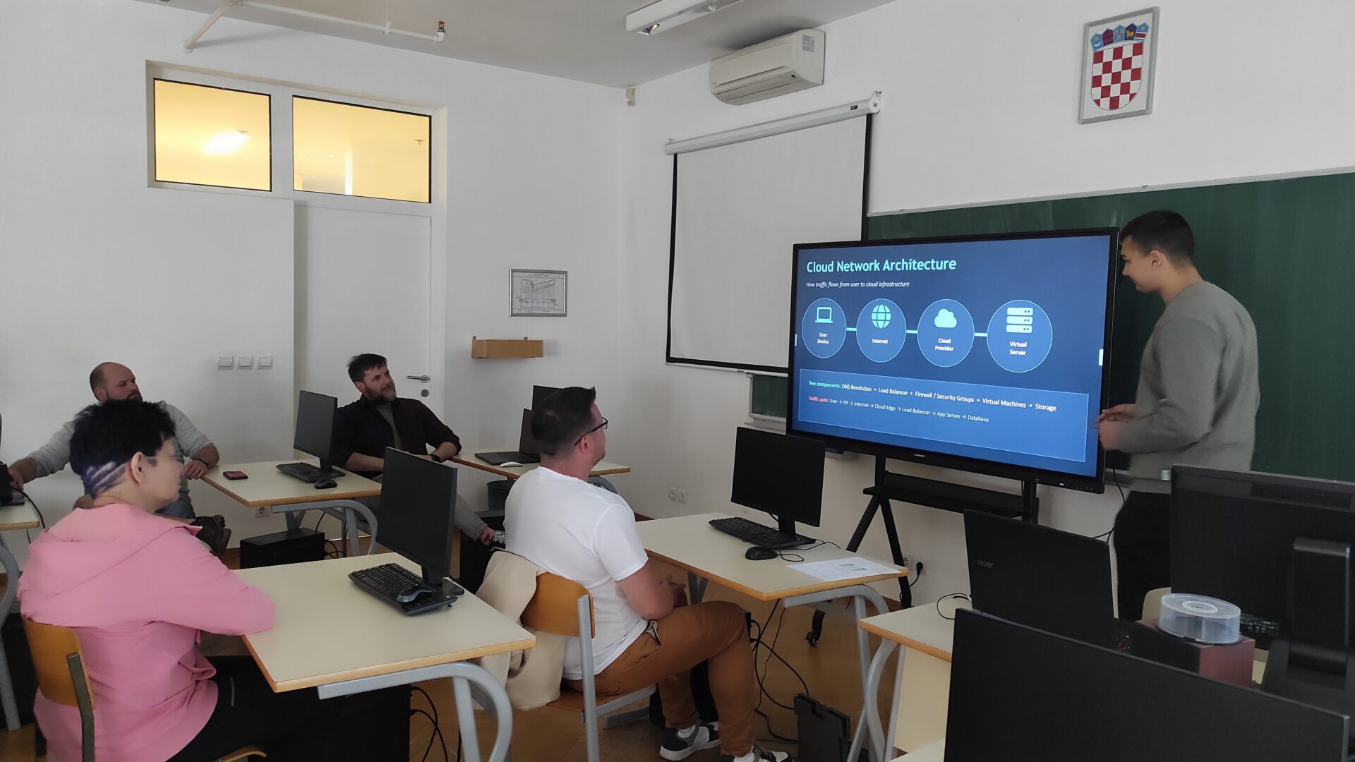 Od 21. do 23. travnja 2026. godine u Srednjoj školi Jelkovec boravili su profesori Tomáš Pakosta, strukovni nastavnici u srednjoj strukovnoj školi Střední odborná škola NET OFFICE Orlová, spol. s r.o., (Orlová – Ostrava, Republika Češka). Oni su, u sklopu projekta 2025-1-CZ01-KA121-VET-000331628, sudjelovali na aktivnosti ‘praćenje rada’ te posjetili nastavu strukovnih predmeta smjera tehničar za računalstvo i tehničar za elektroniku te pritom upoznali strukovni obrazovni sustav u RH (s naglaskom na područje računarstva).