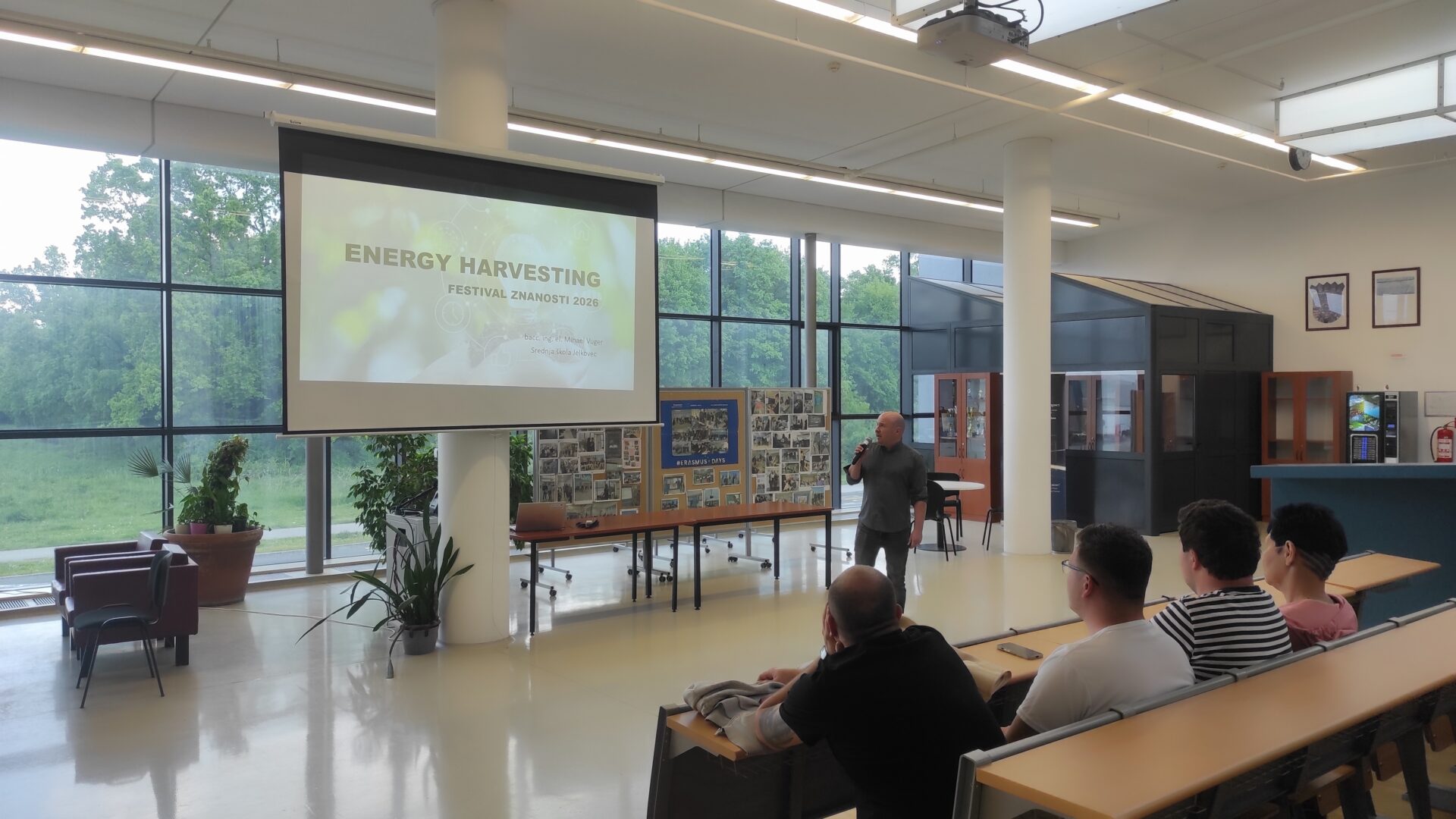 U srijedu, 22. travnja,  profesori su satu predmeta Uvod u računalne mreže (razred 2.e, prof. Horvatić) pratili izvođenje vježbe kodiranja na fizičkom sloju. Na satu predmeta Tehničko i poslovno komuniciranje (razred 4.c, prof. Skuliber) bili su dio publike prilikom izvođenja prezentacija po dobivenom zadatku, dok su na satu predmeta Konfiguriranje računalnih mreža i servisa poslušali prezentaciju učenika Ivana Mikete o cloud serveru. Na kraju radnog dana profesori su sudjelovali  na Festivalu znanosti  –  predavanje i demonstraciju praktičnih primjera ‘Energy harvesting’  koje je izveo prof. Mihael Vuger.