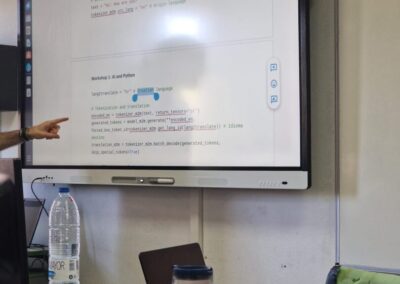 U sklopu upoznavanja Pythona, učenici su naučili kako koristiti Google Colaboratory. Google Collab je razvojno okruženje temeljeno na oblaku koje korisnicima omogućuje pisanje, izvršavanje i dijeljenje Python koda te se često koristi za izradu prototipa modela strojnog učenja. Učenici su ga tijekom radionice koristili u sljedećim zadacima: koliko je tvrdnja pozitivna ili negativna, nastavak rečenice ili zadani prompt te chatbox.