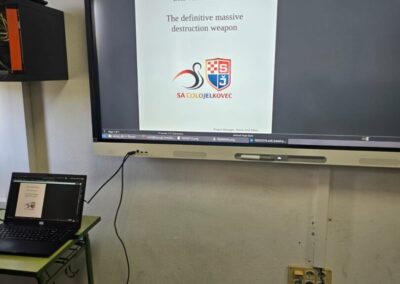 Učenici su, u pratnji jednog nastavnika, proveli radni tjedan u obilasku i aktivnom sudjelovanju na praktičnoj nastavi niza strukovnih predmeta, uključujući njima dosad nepoznat strukovni predmet Digitalna forenzika, te izvannastavnu aktivnost Školska radio postaja.